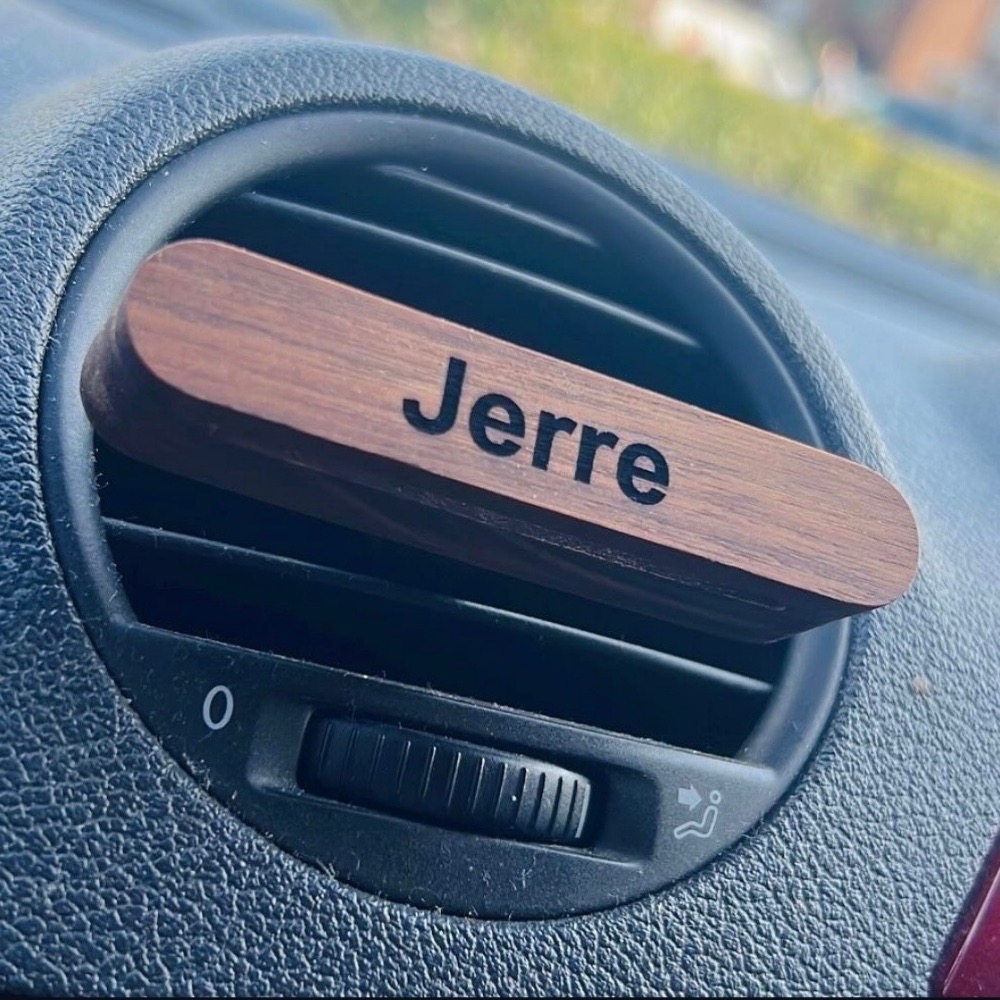Personaliseer de houten auto luchtverfrisser met een naam of namen.  Incl. luchtstaafje
